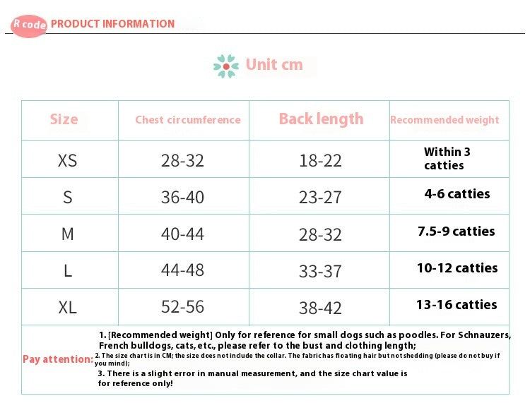 Size: XS-about 1.00 kg-1.50 kg, S-about 2.00 kg-3.00 kg, M-about 3.50 kg-4.00 kg, L-about 5.00 kg-6.00 kg, XL-about 7.00 kg-9.00 kg